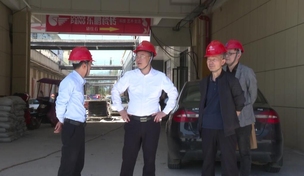 吴韬通过实地查看、听取汇报,详细了解洞口国际商贸城项目建设情况。