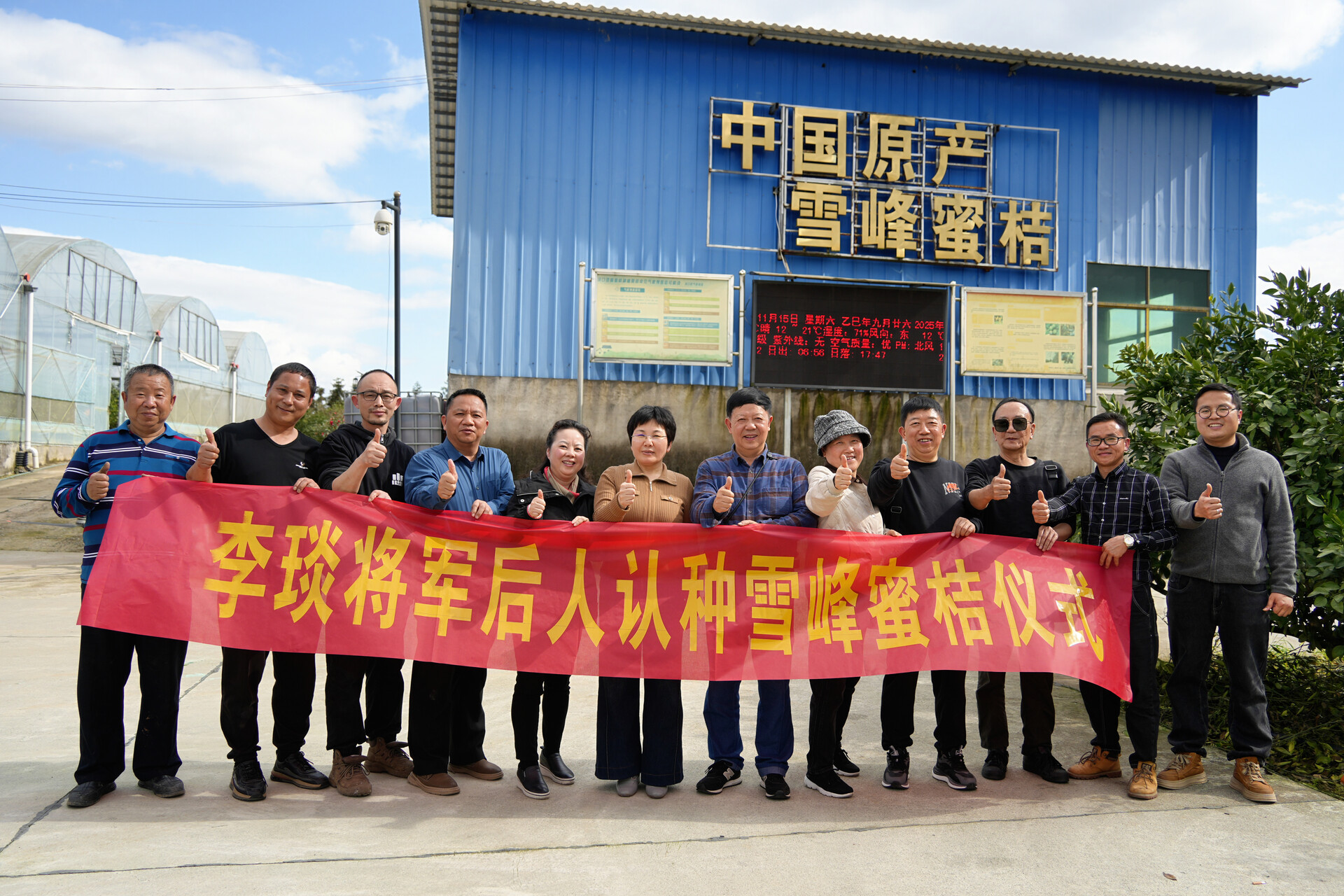 随后,李琰将军后人来到雪峰山下的蜜桔种植基地,亲手认种雪峰蜜桔树苗。雪峰蜜桔是生长在抗战热土上的“胜利果”“感恩果”,承载着对英烈的缅怀和对和平的珍视。认种仪式象征着将军后人与英雄土地的深度联结,更是对“铭记历史、传承精神”的践行。