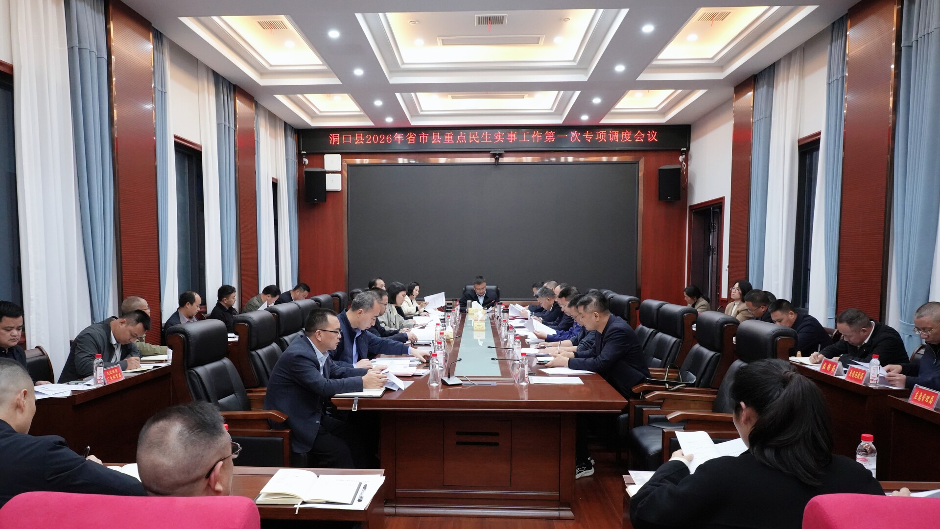 洞口融媒4月23日讯(记者:林巍浩)4月22日,洞口县召开2026年省市县重点民生实事工作第一次专项调度会议。县委副书记、县长许治国主持会议,张纲学、毛超林、伍卫彬、蒙华宁、林飞、肖黎明、杨国荣、张胜男等县领导出席会议。