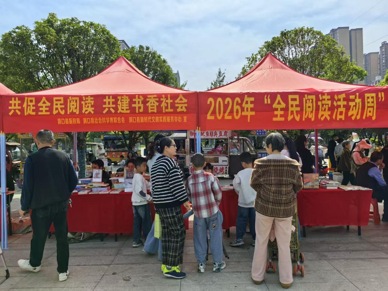 洞口融媒4月26日讯(通讯员:肖海波 向佳丽)4月25日,在第26个“世界知识产权日”和“全民阅读活动周”来临之际,县委宣传部联合市场监督管理局、县文化市场综合行政执法大队、县社科联、县新华书店等部门在县人民广场集中开展“书香洞口·全民阅读”暨世界知识产权日主题宣传活动。活动当天,恰逢2026年洞口县优秀传统文化展示展演系列活动—高沙专场同步上演,广场内人头攒动、氛围浓厚。