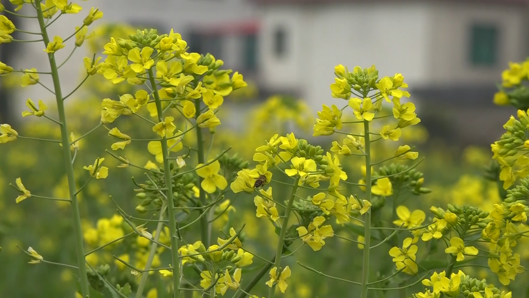 走进田心村,黄灿灿的油菜花田一望无垠。一丛丛油菜花身姿挺拔,在春雨的滋润下显得格外娇艳。它们四瓣组成一朵,呈螺旋状向上生长,仿佛穿着明黄色裙子的小姑娘,在微风中舞动,炫耀着柔美的身姿。微风拂过,花朵随风摇摆,散发出沁人心脾的花香,引来成群的蜜蜂飞进花丛采蜜。