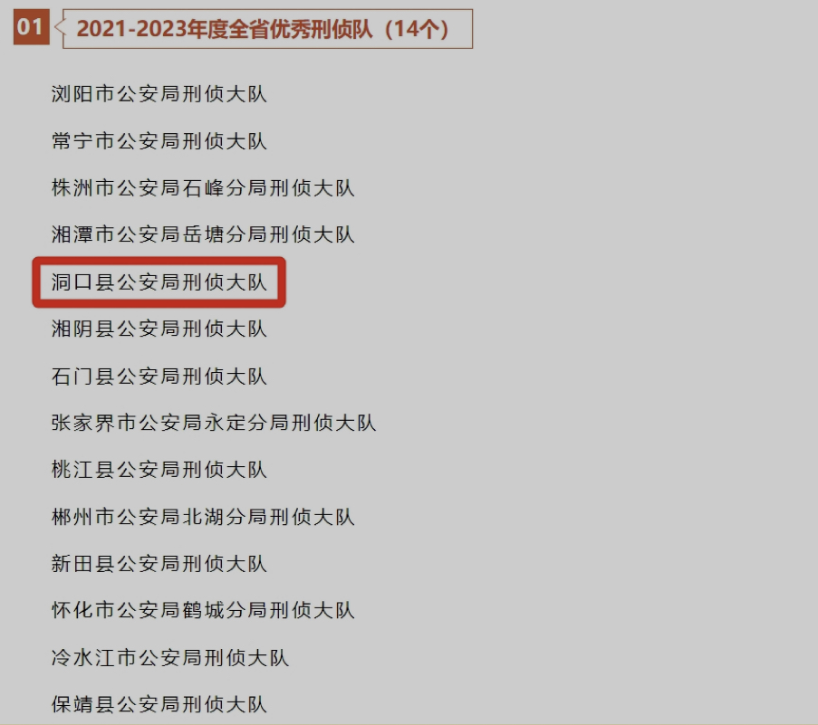 新洞口客户端3月12日讯 (记者:王禹 通讯员:方倩)近日召开的全省公安刑侦工作会议通报表彰了2021-2023年度14个全省优秀刑侦队,我县公安局刑侦大队名列其中,荣获“2021-2023年度全省优秀刑侦队”称号。
