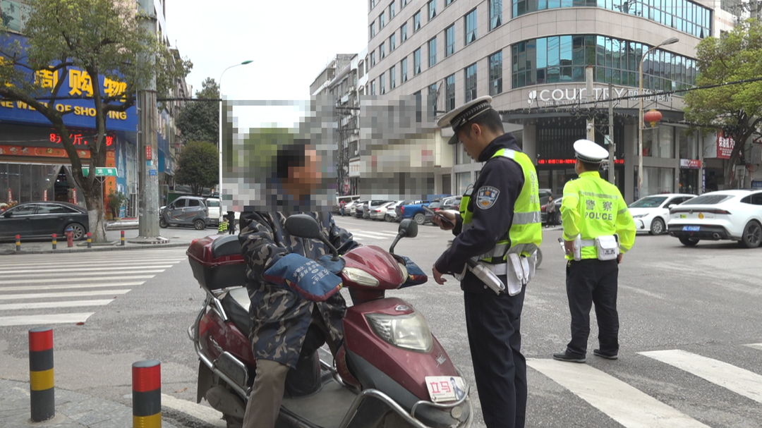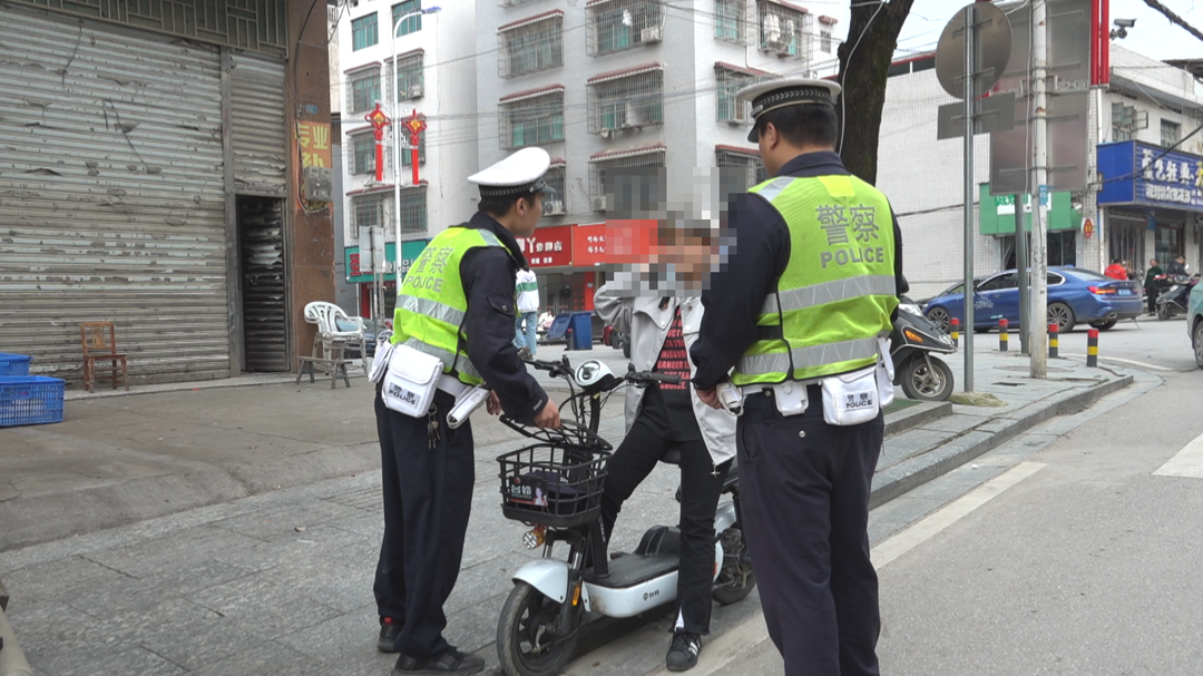 3月27日,记者在县城桔城路与太平路交叉路口、蔡锷路与广场路交叉口等地看到,执勤民(辅)警在各自责任路段,一边指挥交通,一边严查过往摩托车、电动车驾乘人员不戴安全头盔、超员载人、加装伞具等交通违法行为。同时,采取教育与处罚相结合方式,向骑乘人员宣讲佩戴安全头盔的重要性,要求大家自觉佩戴安全头盔,安全出行。