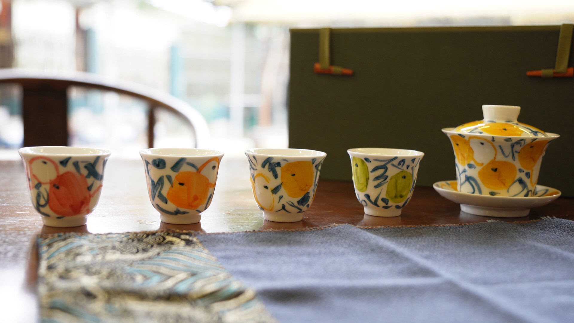 首批“雪峰橘颂”系列产品包含1套盖碗和4只杯子,刚完成烧制便吸引了众多陶瓷爱好者的关注。“未来我们会把更多洞口文化元素融入宋瓷创作,让洞口宋瓷被更多人知晓,让传统文化在乡村振兴中焕发新活力。”王周能说。