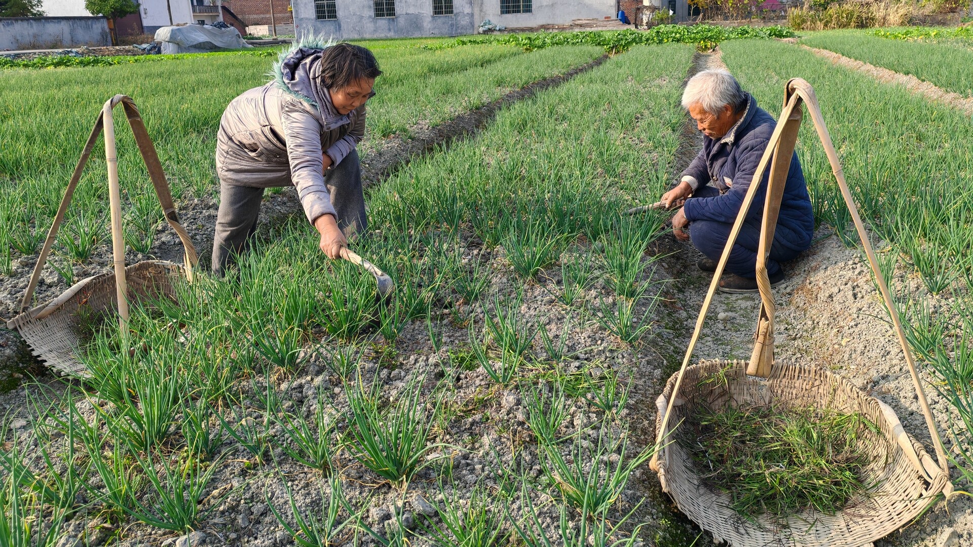 田间地头,随处可见种植户忙碌的身影。他们俯身细心清理杂草,防止杂草争夺养分;不远处,有人将自家沤制的有机肥运至田边,均匀撒施。“现在除尽草、施足肥,开春葱长得快、香味足,才能卖上好价钱。”正在劳作的种植户笑着向记者介绍。走进基地,可见村民们正在细致劳作。他们蹲在青翠的葱苗旁,手持小锄头,小心翼翼地将杂草一一剔除,确保养分集中供应。不远处,部分种植户正协力将充分腐熟的农家肥搬运至田边,随后均匀撒施入土。
