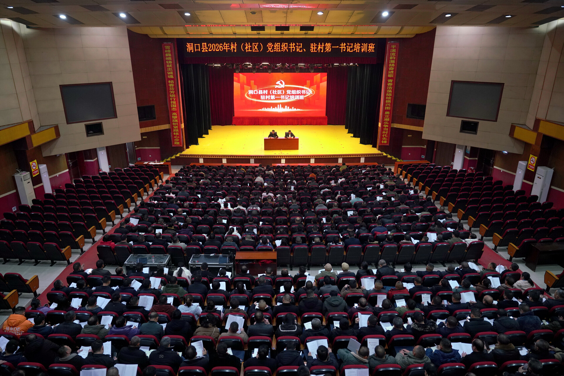 洞口融媒1月29日讯(记者:王禹)为进一步提升全县村(社区)党组织书记和驻村第一书记的政治素养、履职能力和业务水平,锻造一支政治过硬、本领高强、作风扎实的基层骨干队伍, 1月29日,我县2026年村(社区)党组织书记、驻村第一书记培训班在县人民大会场举行,换届后新当选的366名村(社区)党组织书记和108名县派驻村第一书记参加培训。