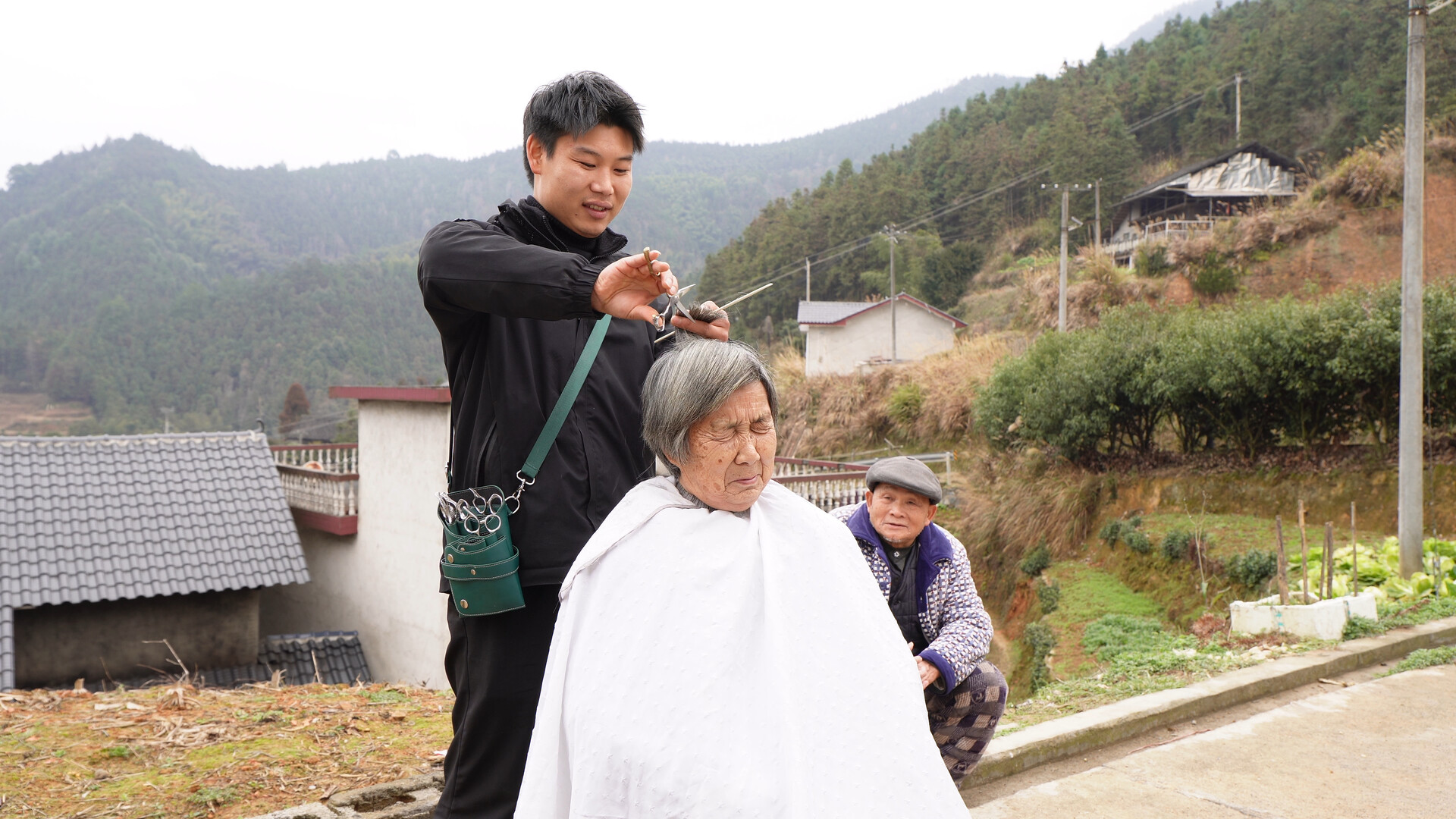 “年纪大了,腿脚不方便,去镇上理发来回要大半天,现在理发师主动上门,剪得又好,还不收钱。”刚刚陪老伴理完发的肖爷爷满脸笑意,连连竖起大拇指。