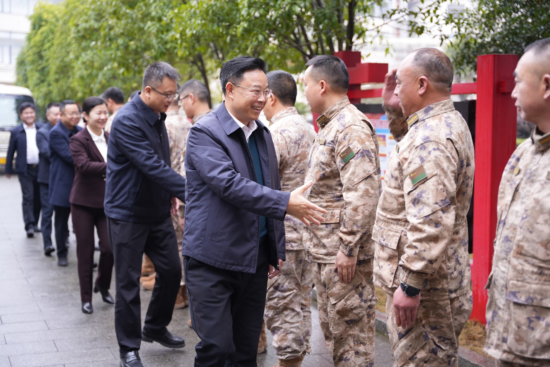 随后,吴韬、许治国一行来到驻县某部队,向部队官兵致以节日的问候,开展座谈交流,畅叙鱼水深情,共话军地发展。吴韬表示,县委、县政府将一如既往地重视、关心、支持部队的建设与发展,用心用情用力解决好广大官兵的后顾之忧,让大家安心服役、建功立业。同时,也希望驻县部队一如既往地关心、支持洞口的经济社会发展和社会大局稳定,共同续写新时代洞口军民鱼水情深的新篇章。