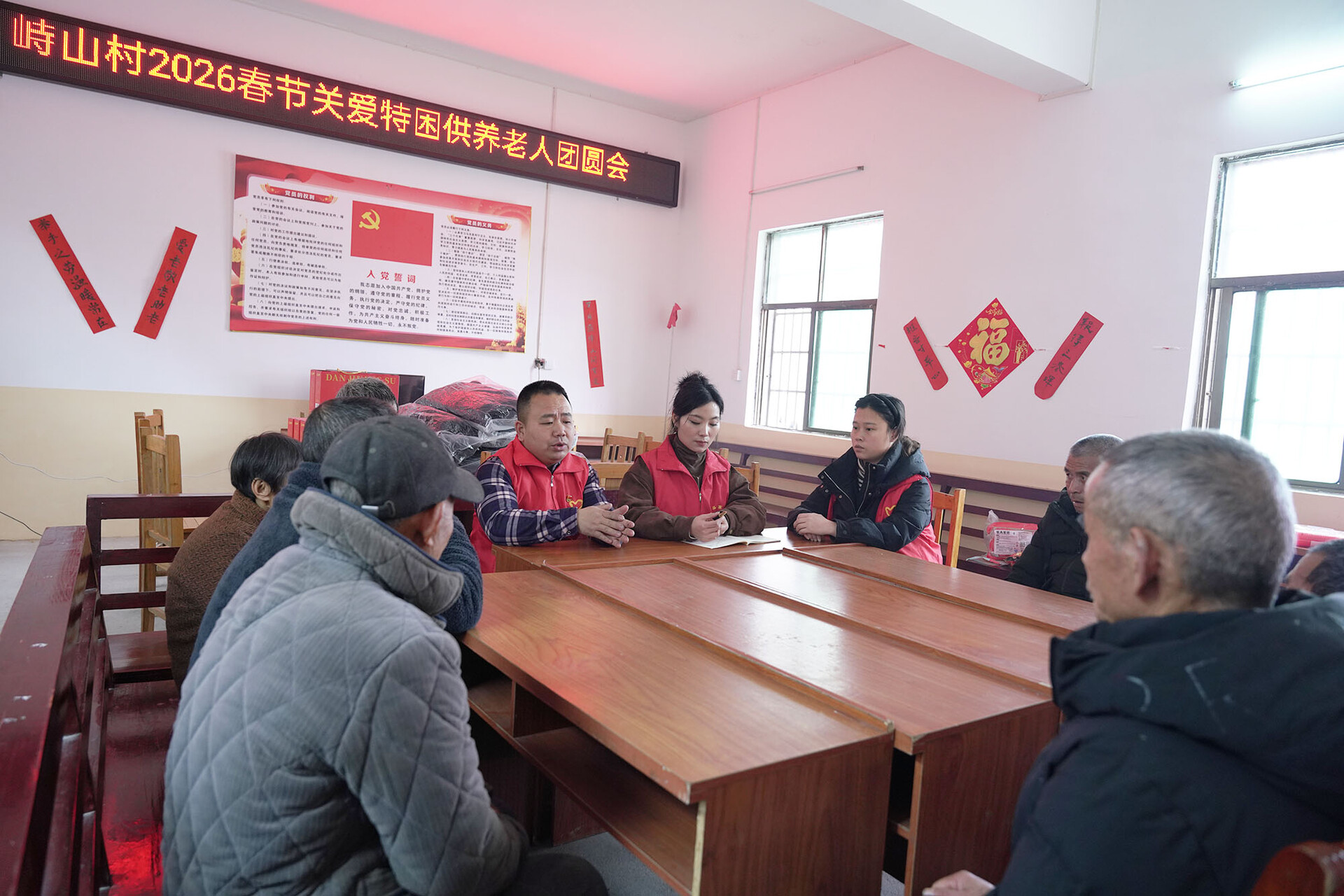 活动当天,峙山村党员活动室里暖意融融,一场别开生面的新春座谈会在此举行。党员志愿者与村里的特困供养老人们欢聚一堂,共话家常。村党支部书记详细询问了老人们的身体状况和生活情况,耐心倾听他们的需求与心声,并叮嘱老人们注意冬季用火用电安全。