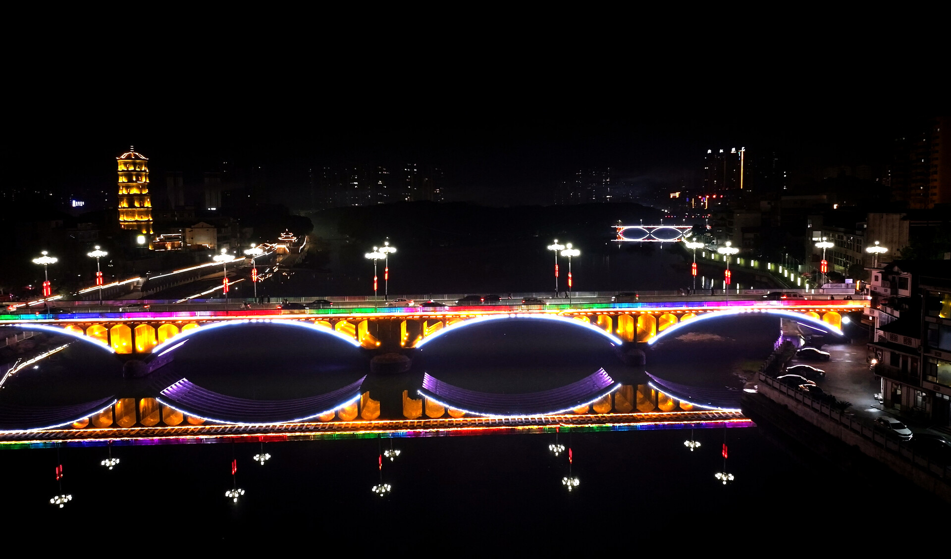 夜幕降临,华灯初上。主干道红灯高悬、流光溢彩,桥梁灯饰与江面倒影相映成趣,广场与出入口花卉造景、吉祥物点缀,勾勒出温馨雅致的城市夜景。市民漫步街头,纷纷拍照打卡,赞叹亮化工程扮靓家园,让新春氛围更浓、回家之路更暖。