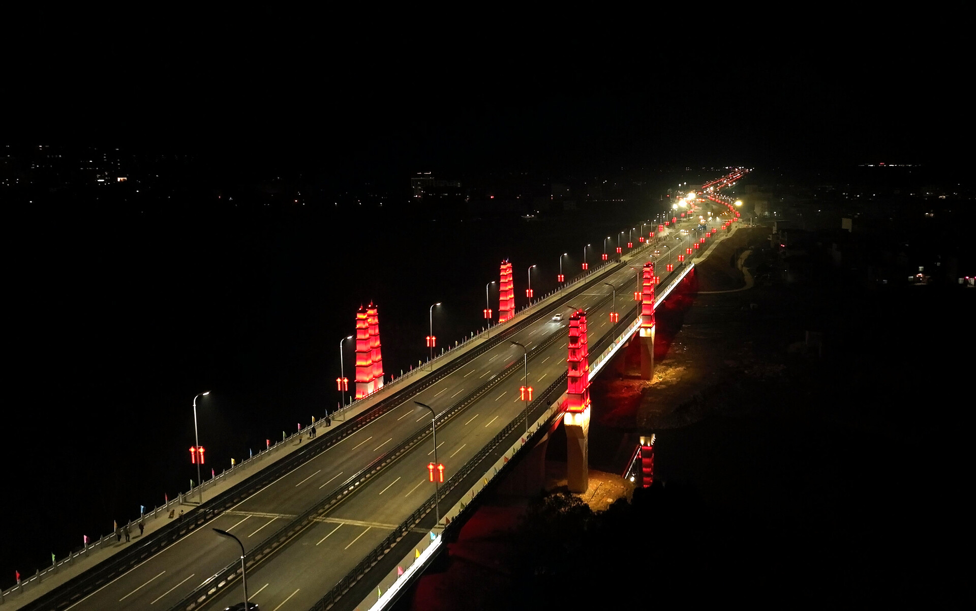 在县经开区经开区路、机场路、梨园东路、聚福路县城市管理和综合执法局组织完成了太阳能路灯改造238盏,并在桔城大桥沿线及县经开区新安装中国结912套。