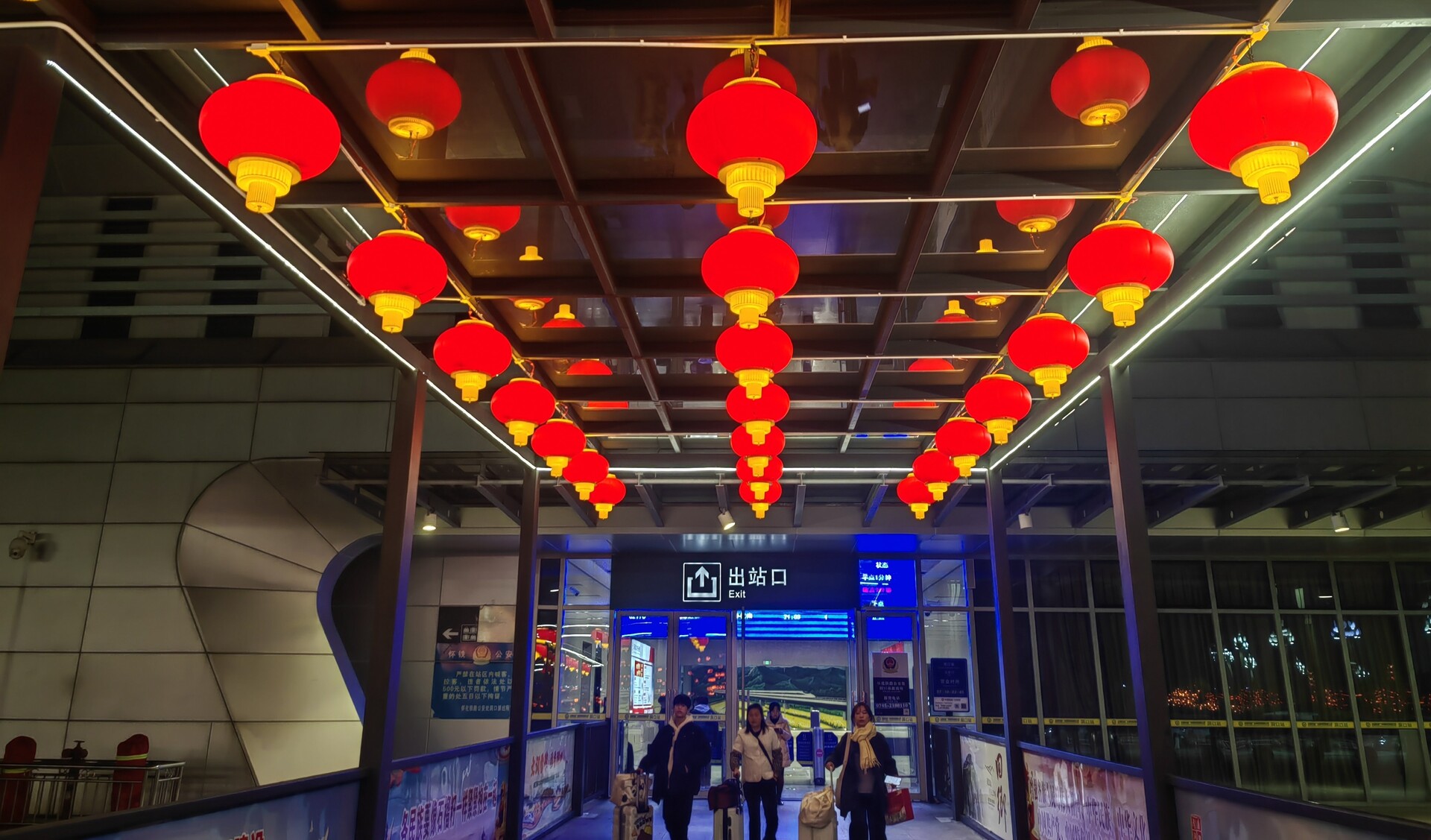 在高铁站广场、 雪峰广场,亮化景观以“2026·春”为核心设计元素,整体造型大气而不失精致。中间醒目的“春”字灯饰被层层光环环绕,上方“2026”的字样清晰亮眼,两侧对称的绿色灯架上悬挂着四盏喜庆的大红灯笼,灯架上“马年吉祥”“恭贺新春”的祝福标语,传递出对全县人民的美好祝愿。景观底部用红黄相间的花卉和彩灯铺陈,一条“洞口县委、县人民政府恭祝全县人民新春快乐”的横幅格外醒目,让每一位途经的人都能感受到来自家乡的温暖问候。