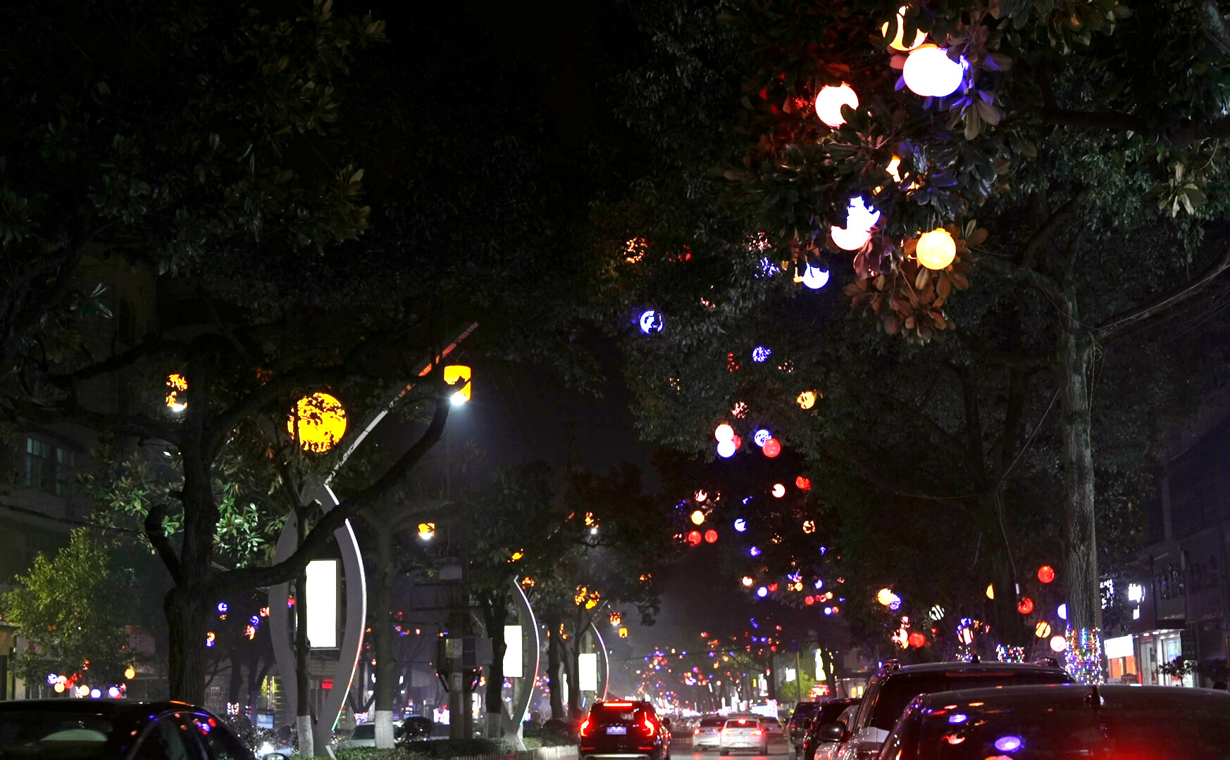 2月14日晚,记者在县城桔城路、文昌路、蔡锷路、双洲路等街道看到,沿街树木与路灯已完成亮化装扮,各式彩灯璀璨夺目,节日氛围浓厚。