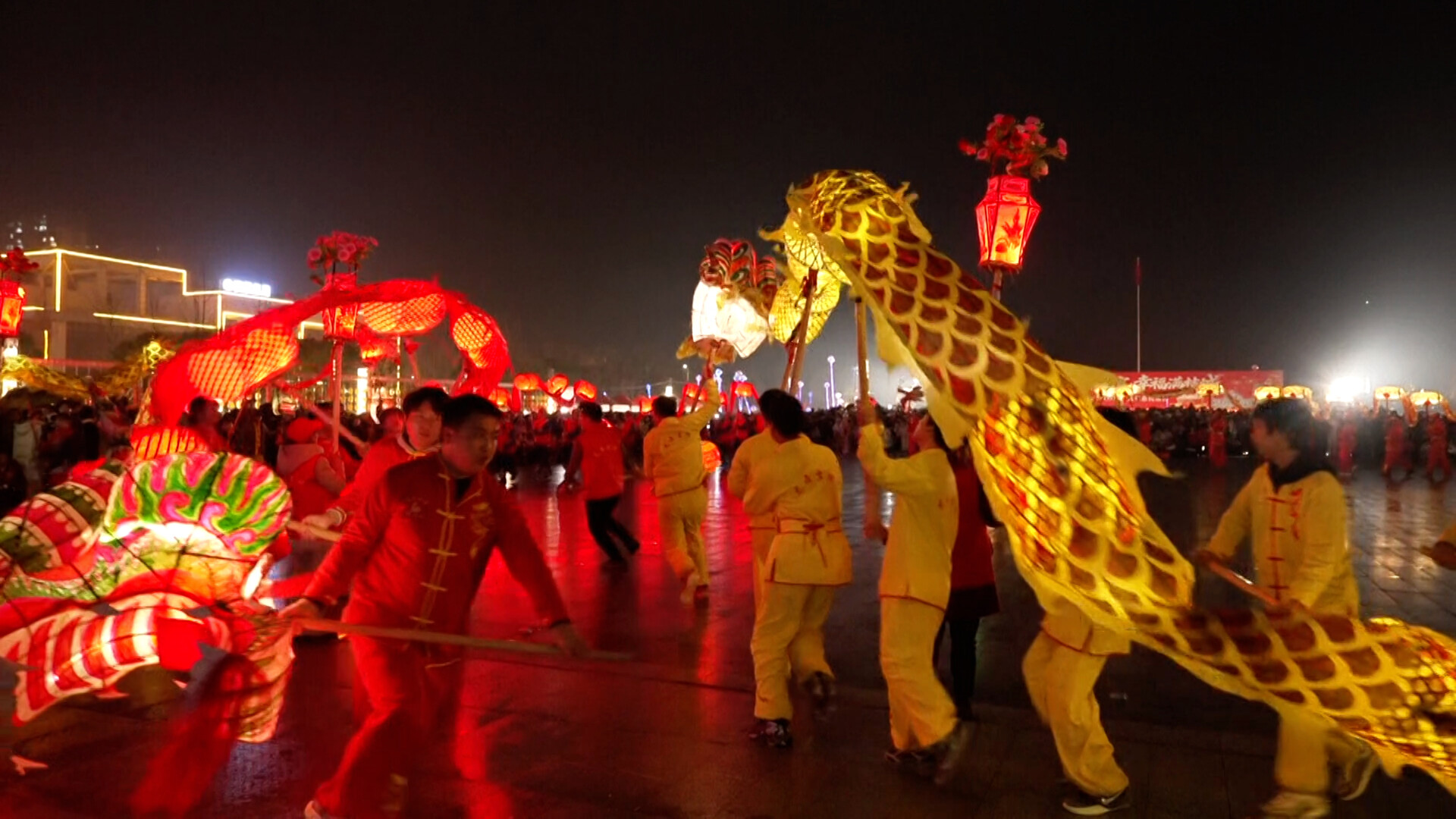 夜幕下,龙灯熠熠、灯火璀璨,一盏盏龙形花灯缀满龙身,流光溢彩、亮如星火。伴随着激昂的鼓点,十支舞龙队伍依次登场,灯龙昂首摆尾、腾跃翻滚,灯影流转间,尽显“龙腾盛世”的磅礴气势;瑞狮憨态可掬、登高采青,与灯龙相映成趣,寓意“瑞气盈门”的美好祈愿。每一个动作都赢得满堂喝彩,观众们纷纷驻足拍照,掌声、欢呼声此起彼伏。