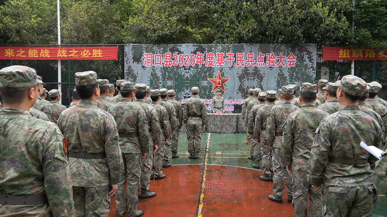 洞口融媒4月14日讯(记者:江京晟 通讯员:周后明)4月14日,洞口县举行2026年度基干民兵集中点验大会。来自全县各条战线的基干民兵军容严整、精神饱满接受点验,充分展现了新时代民兵队伍过硬的作风和良好的精神风貌。县委常委、县人武部部长夏世界出席并讲话,县人武部政委唐克伟参加。