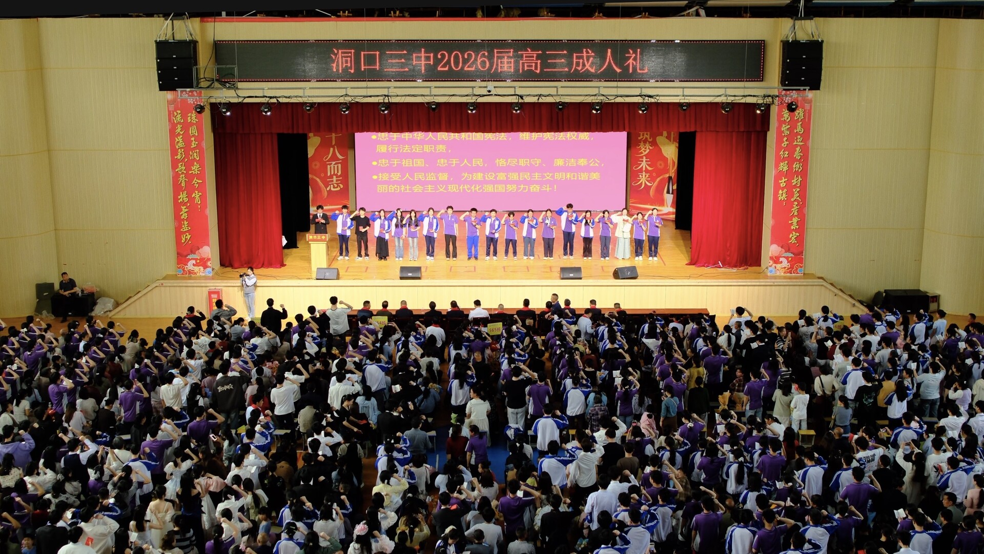 洞口融媒4月20日讯(记者:邓贝乐)4月19日,洞口三中举行2026届高三成人礼,全体高三学子在教师与家长的共同见证下,迎来十八岁的重要成长节点。