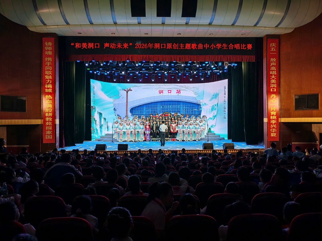 洞口融媒4月29日讯(记者:胡涛) 4月29日下午,由县教育局主办的“和美洞口 声动未来”2026年洞口县原创主题歌曲中小学生合唱比赛在县人民大会场圆满举行。副县长肖黎明出席活动。