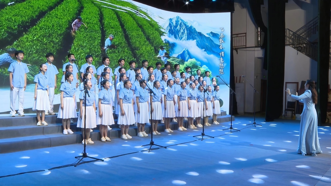 比赛现场,来自全县22支中小学合唱队伍依次登台,用清澈的童声深情演绎了一批以洞口本土文化为灵感的原创歌曲。《想去洞口走一走》《遇见洞口》《幸福洞口天地宽》等2025年“我为洞口写支歌”活动的获奖作品轮番唱响。孩子们用纯真的嗓音勾勒出家乡的街巷田野和祖辈讲述过的故事。现场观众时而静心聆听,时而报以热烈掌声,不少人在熟悉的旋律中轻声跟唱,浓浓的乡情在会场内流淌。