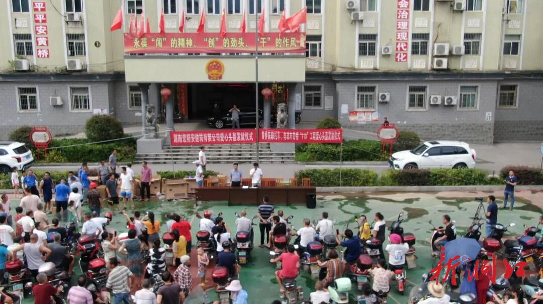 8月5日,爱心企业湖南宏裕安建筑有限公司将5000只安全头盔送到黄桥镇党委、政府负责人手中,用实际行动助力"一盔一带"安全守护行动。