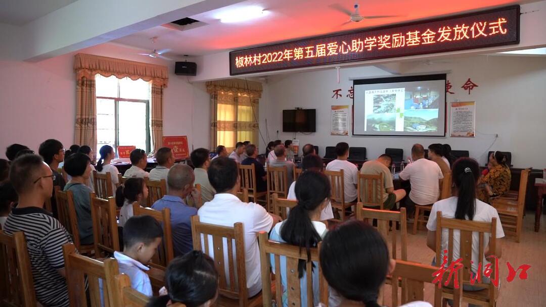 8月18日,桐山乡椒林村举行2022年第五届爱心教育助学奖励基金发放仪式,勉励学子努力学习,以优异的成绩回报社会、回报家乡。