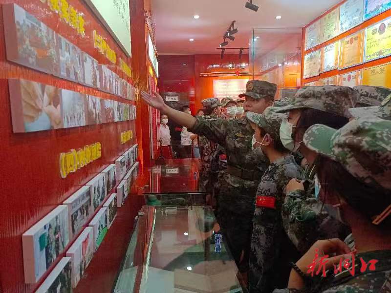 随后还参观了学校的国防教育文化长廊、展板及军事化宿舍。