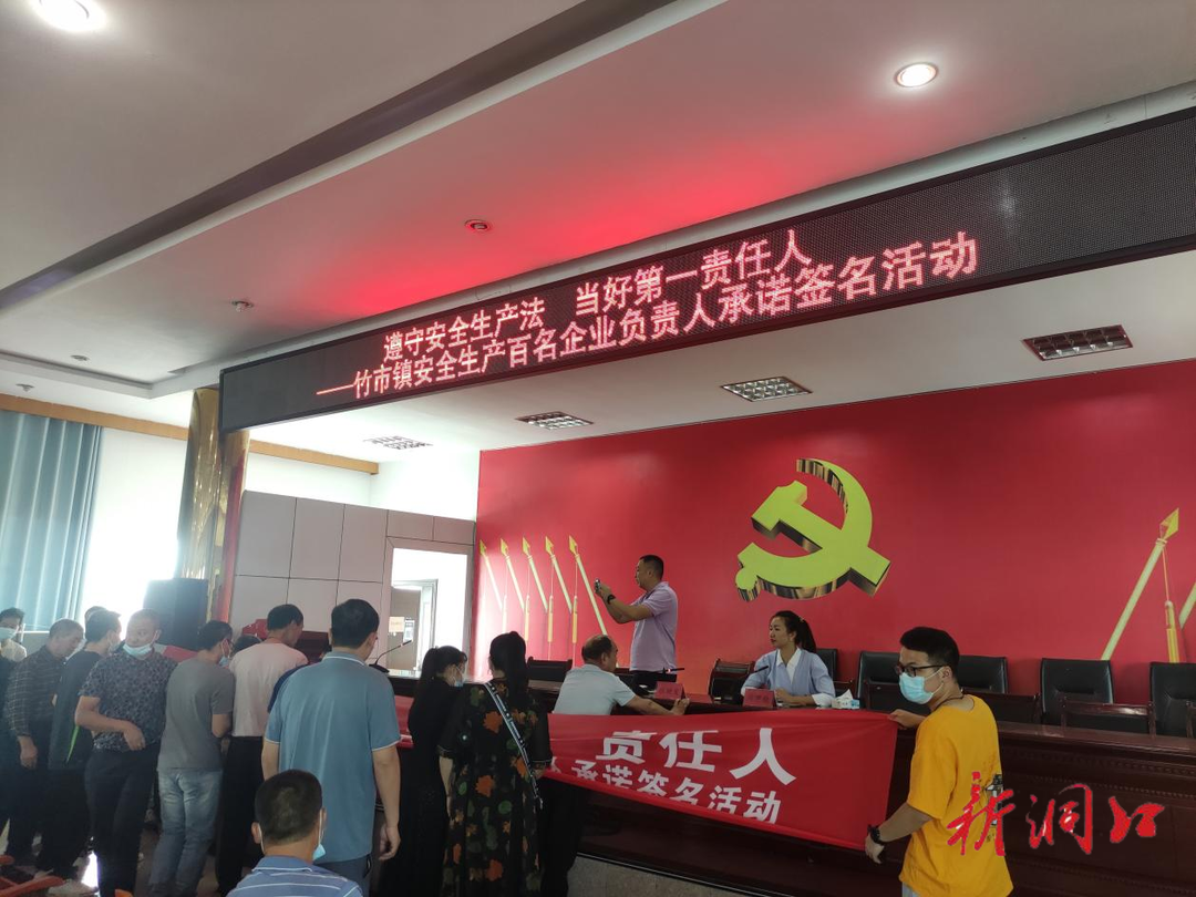 9月25日上午,洞口县竹市镇组织辖区内重点企业、单位召开安全生产业务培训暨工作部署会议,重点部署“一节一会”期间企业、单位安全防范工作,围绕“遵守安全生产法,当好第一责任人”主题举行承诺签名活动。