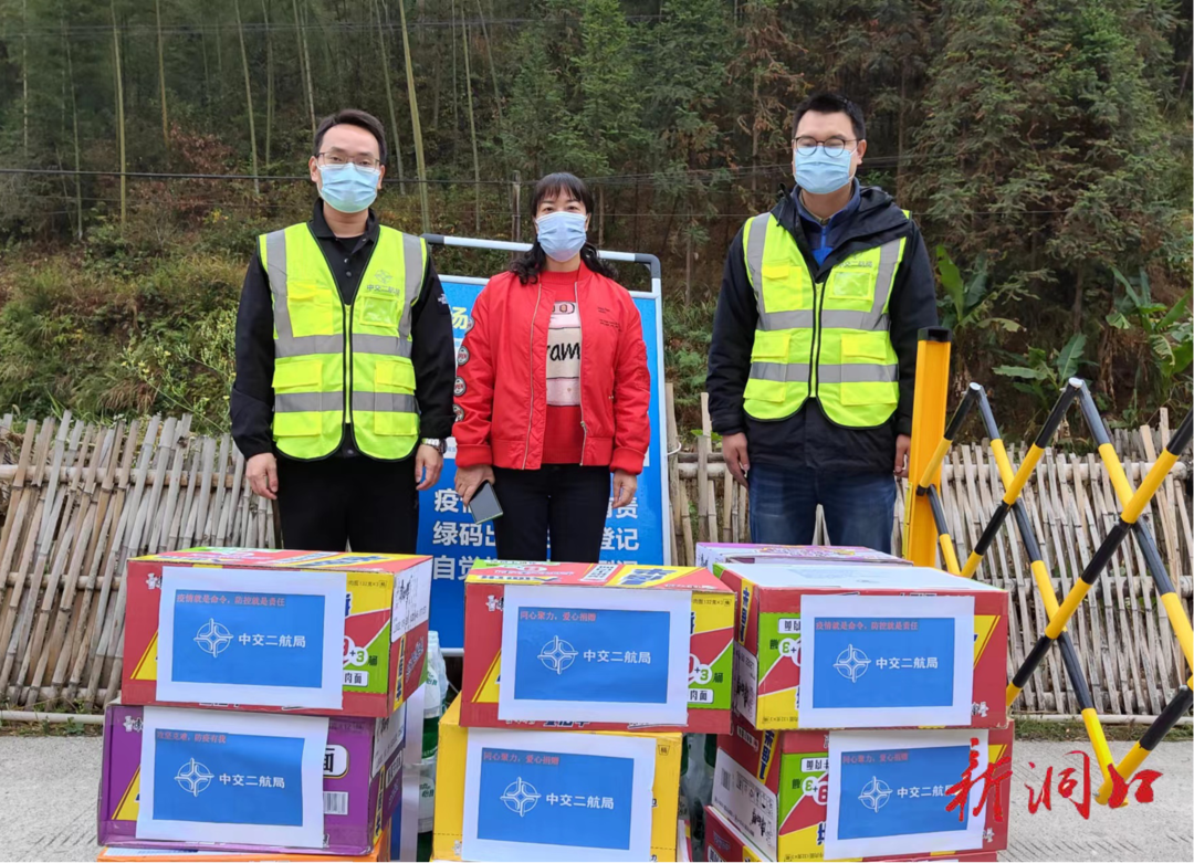 10时30分,中交第二航务工程局有限公司草罗公路项目部书记罗加林携带矿泉水等生活物资,慰问江口镇“疫”线工作人员,为乍寒的秋日山区注入温暖力量。