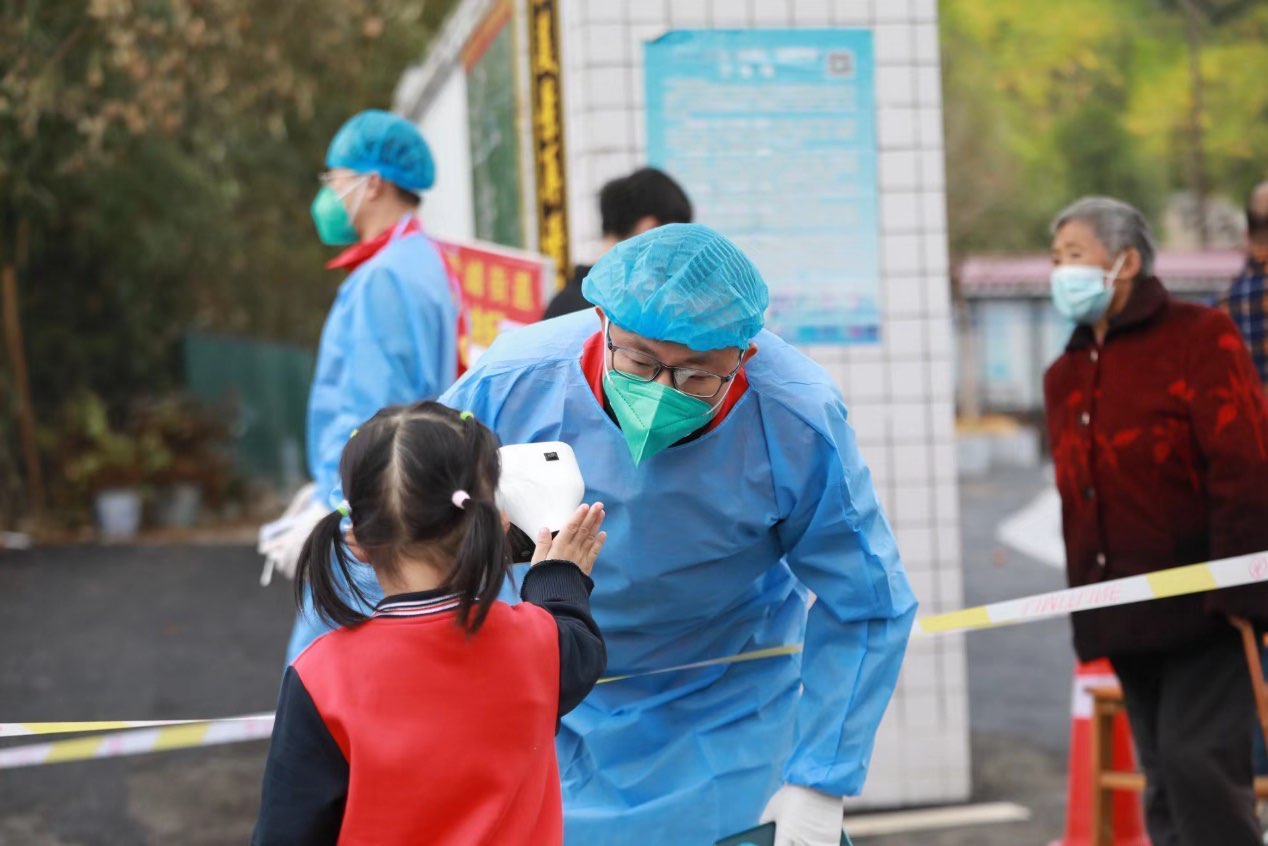 在核酸采样点,街道、村(社区)干部和医护人员早上7点便已抵达采样现场,摆开阵势,迎接核酸采样高峰。“请大家注意自身防护,带好口罩,保持两米间隔,有序排队,主动扫码;”,现场工作人员身着红马甲、臂带红袖章在现场全力维持秩序,登记、采样、转运、清理;,一个个“大白”在现场一刻不停的忙碌着,检测点上方,一面鲜红的党旗正迎风飘扬。采样结束后,街道、村(社区)党员干部和志愿者开展网格化摸排管控,发放核酸预约单,接送核酸采样物资直到夜幕降临,为了能快速赶往现场,很多村(社区)干部干脆直接住在了办公地点。