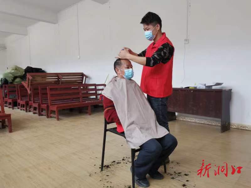 方志建是县城“纤手美发国际沙龙”的理发师,受疫情影响回到桐山乡老家万里村。受疫情封控影响,加上村里没有理发店,万里村许多村民头发过长,发型杂乱。方志建发现后,萌生了为村民义务理发的念头。他的想法得到了万里村“两委”和村新时代文明实践站的支持,并为他提供了理发场地。村民们都可以携带48小时核酸阴性证明前往免费理发。经过方志建的一番忙碌,前来理发的村民们一个个容颜焕发,满意而归。