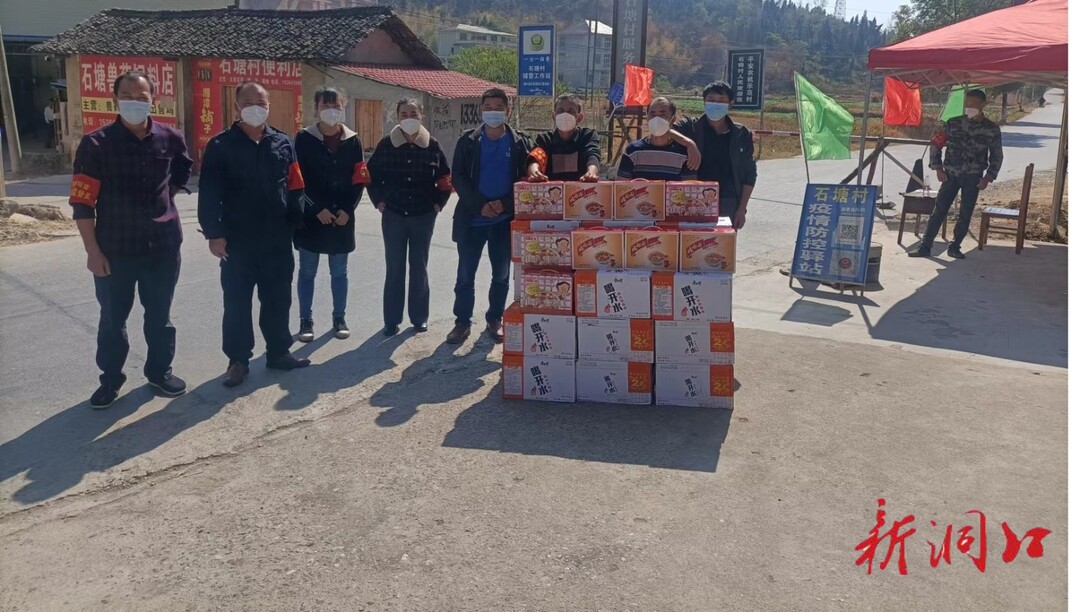 自发的爱心捐赠。看到党员干部和志愿者们日夜坚守在疫情防控一线,村民谢扬午、谢平君、谢艳军、谢艳雄、谢国良、谢李平、谢小毛、谢扬岩、谢光贵、谢续龙等人深受感动,自发捐赠物资送到各个卡点志愿者手中。家住竹市镇的覃贤军,因疫情交通管制不能外出,几经辗转才与石江好又多超市老板联系上,托人送来了防疫物资。这些爱心人士的慷慨捐赠,增强了石塘村众志成城、共克时艰、打赢疫情阻击战的决心和信心。