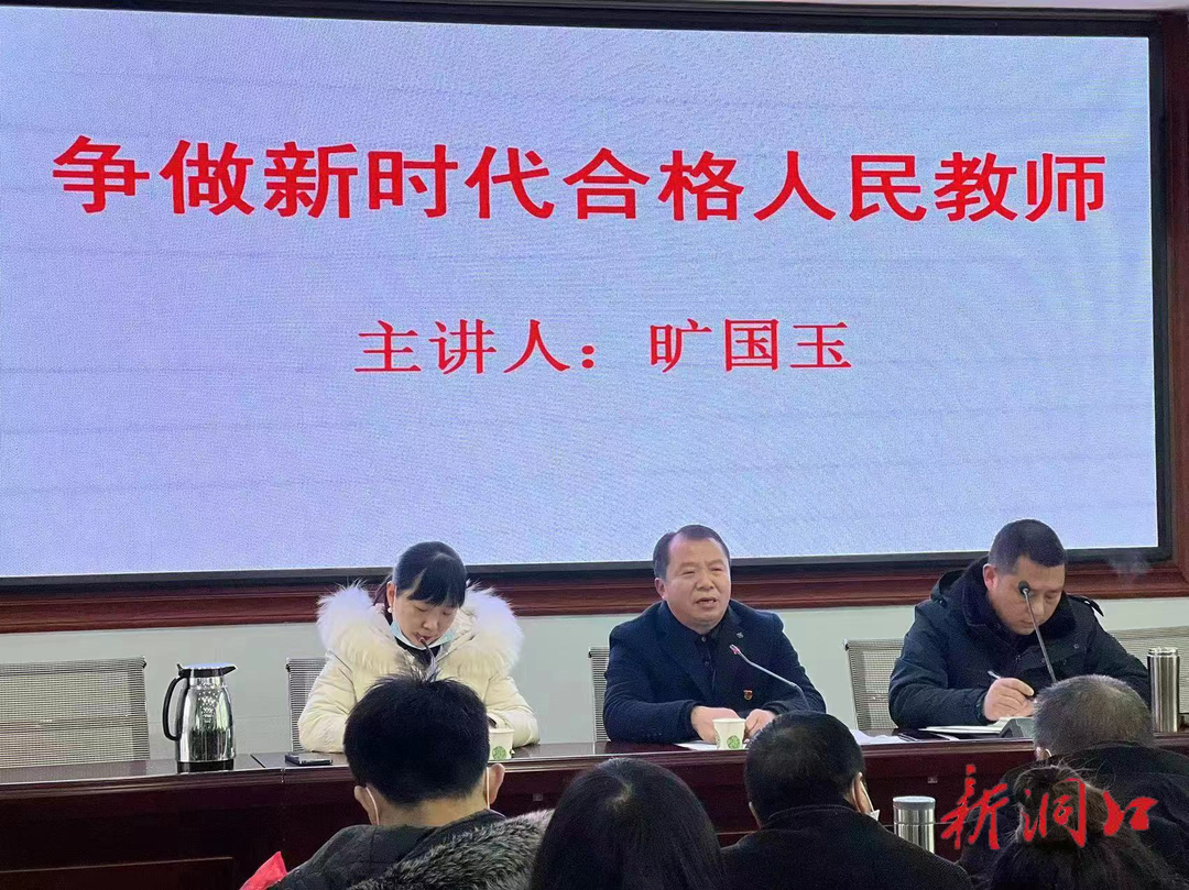 春季开学在即,2月3日上午,高沙镇中学分管安全副校长给该校全体教师上了题为《争做新时代合格人民教师》的“开学第一课”。