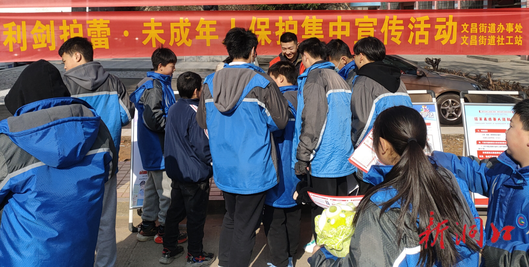 为进一步宣传、贯彻落实《中华人民共和国未成年人保护法》,保护未成年人的身心健康,保障未成年人的合法权益,预防未成年人犯罪,促进未成年人在品德、智力、体质等方面全面发展,2月15日,文昌街道社工站组织志愿者走进城关中学开展“利剑护蕾-未成年人保护法进校园集中宣传”活动。