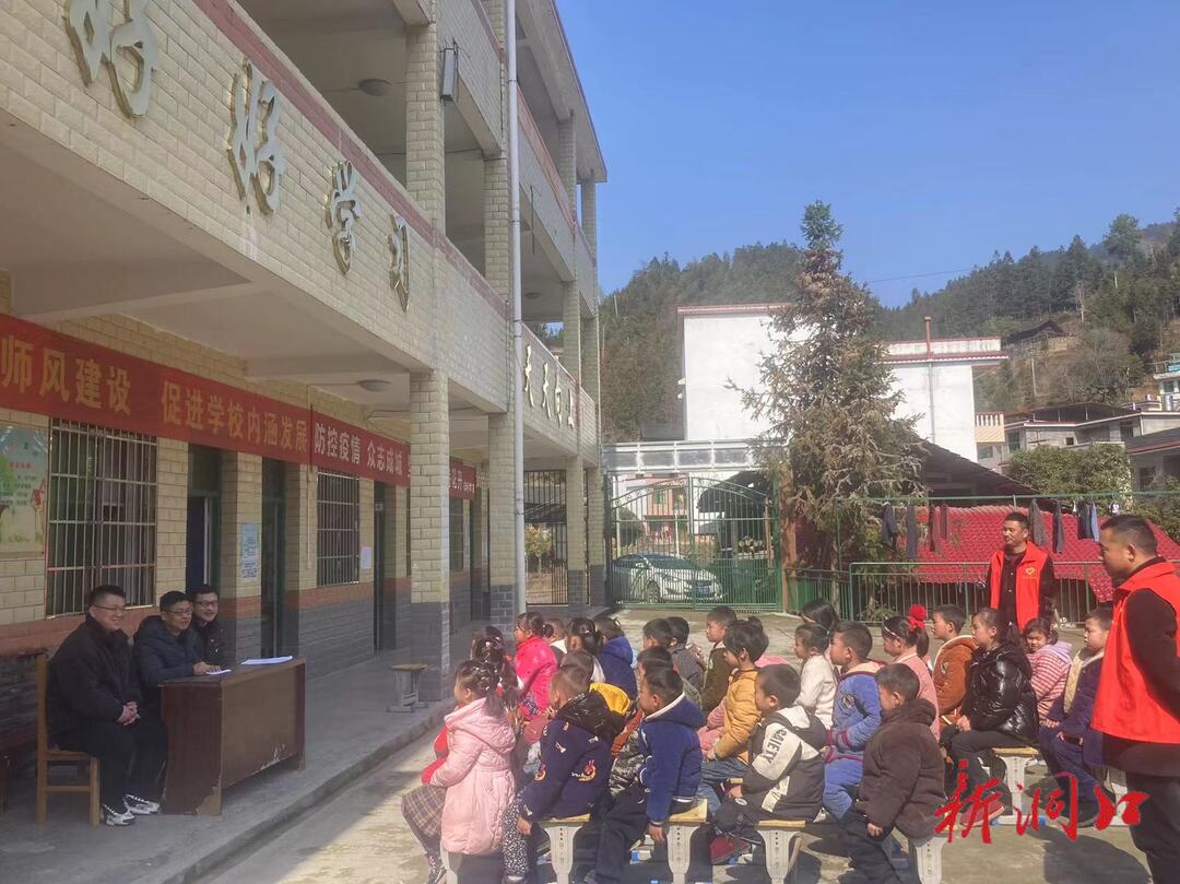 2月15日上午,洞口县人大代表、桐山乡市坪村党支部书记刘光清与志愿者一道来到村教学点,开展法制教育进校园活动。