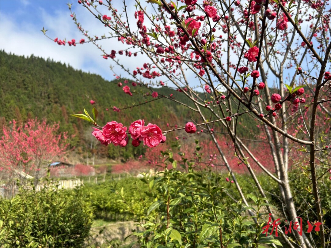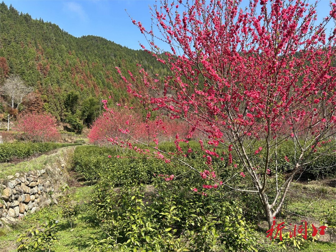 连日来,我县迎来了春日里难得的晴天。随着气温回升,洞口县古楼乡连片茶园在春风中醒来,茶叶逐渐抽嫩芽,茶园间种的桃树逐渐进入盛花期,火红的桃花迎来最佳观赏期,远远望去,像一片火红的朝霞。