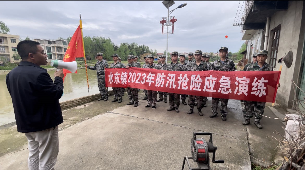 新洞口客户端4月20号讯(通讯员:唐瑜泉)4月19日下午,水东镇组织民兵开展防汛救灾应急演练,进一步提高民兵队伍综合处置险情能力和实战水平,确保险情发生时应急队伍拉得出、顶得上、打得赢。
