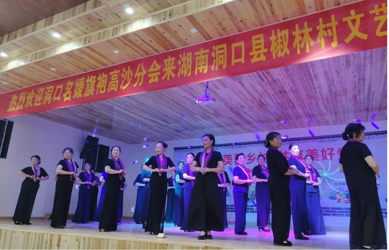 新洞口客户端7月3号讯(通讯员:曾志勤、 阳东海)7月2日晚上,伴随着古典的音乐和观众的喝彩,桐山乡椒林村大礼堂舞台上,洞口名媛旗袍高沙分会的10旗袍“模特”款款走来,以从容的步伐、美丽的形体、自信的气质,展示着属于中国传统女性的优雅、东方女性的魅力,赢得了现场观众的掌声与喝彩。