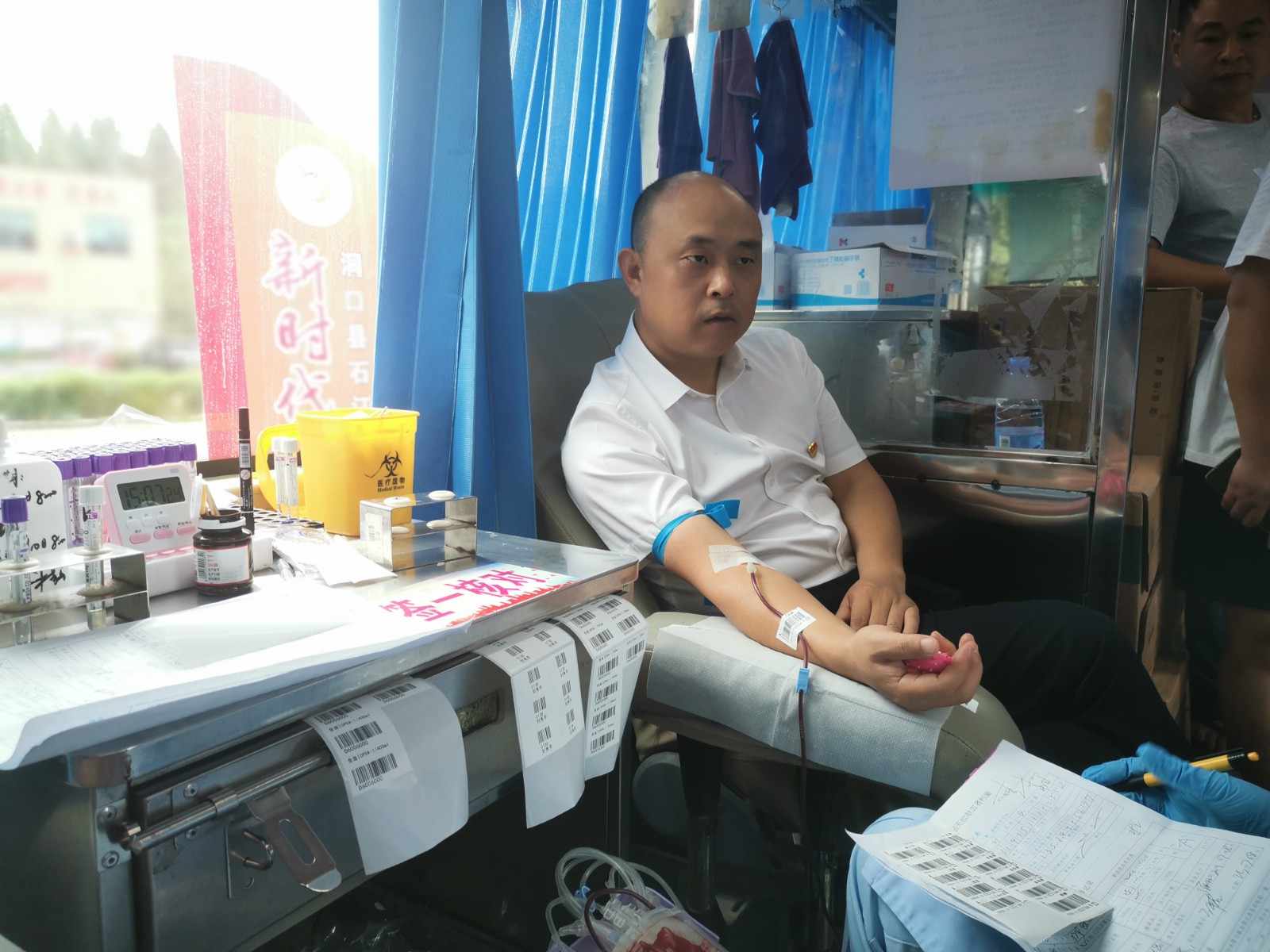 “在身体条件允许的情况下,我都会来献血,用实际行动奉献爱心,传递正能量。”石江镇党委负责人在确定符合献血标准后,献血400毫升。