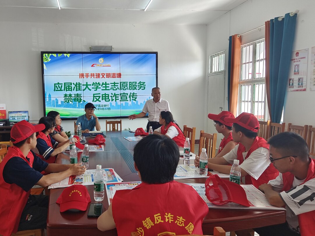 新洞口客户端8月24日讯(通讯员:何锦)“大爷,您有收到过陌生短信、接到过陌生电话吗?”“网络交友要谨慎,网上投资不轻信!”“网络刷单不合法,转账汇款一定要核实”……近日,高沙镇温塘村举行今年应届准大学生志愿服务禁毒、反电诈宣传培训活动,组织准大学生志愿者走家串户,开展禁毒、反电诈宣传。
